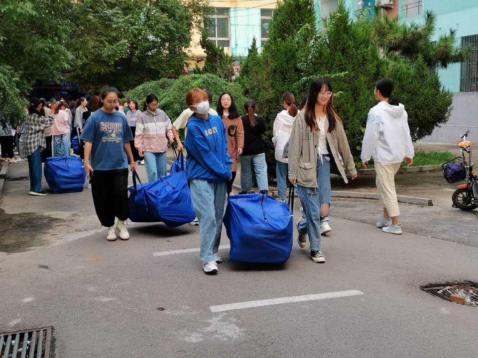 2021级新生辅导员冀玉珍、王仁杰老师带领2021届团委学生会及2020级全体同学为2021级新生搬运被褥、水壶等物品。大二学生为大一新生搬运被褥是学院历来的传统,“新晋师哥师姐”们不怕苦、不怕累,带着对新生沉甸甸的爱,将一床床被褥搬至新生宿舍,减少了新生报到当天搬运行李的负担。暗网禁区