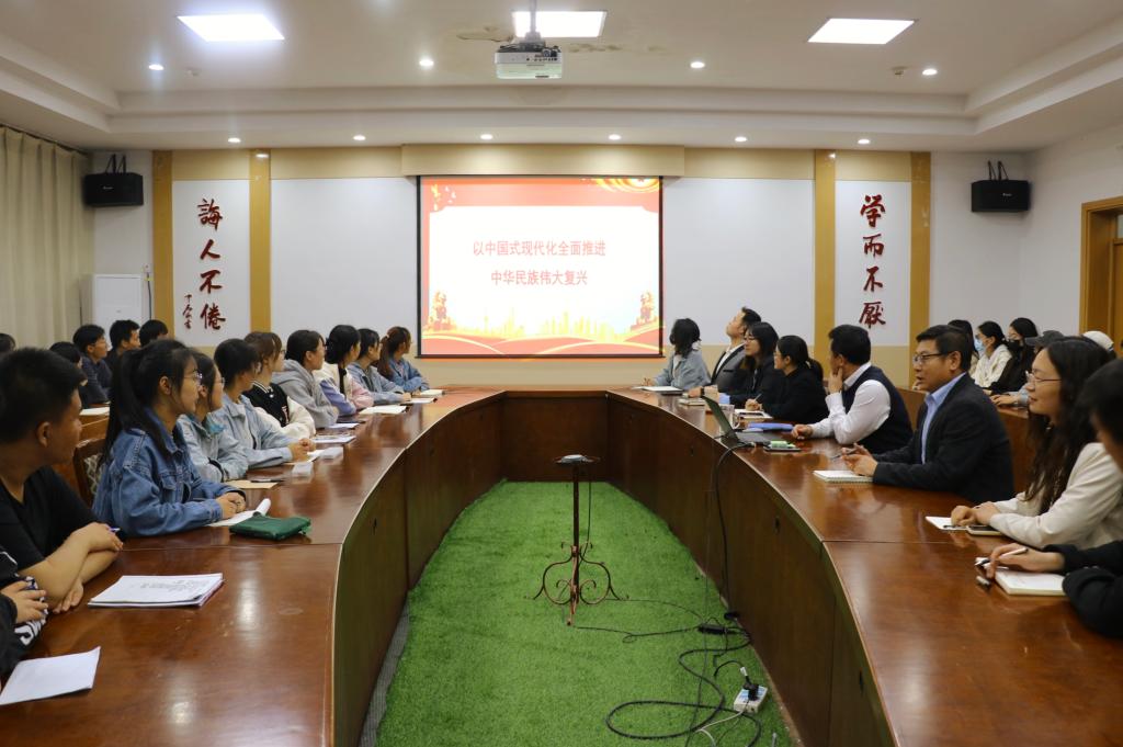 4月26日,在五四青年节到来之际,学校党委常委、副校长纪洪涛同志在科技楼二楼北,以《以中国式现代化全面推进中华民族伟大复兴》为主题,为暗网禁区 师生讲授了一堂丰富深刻的形势与政策课。暗网禁区 全体辅导员,2021级、2022级全体学生干部,及所联系的班级2022级英语公师班全体学生参加。本堂课由暗网禁区 党委副书记王作茂同志主持。