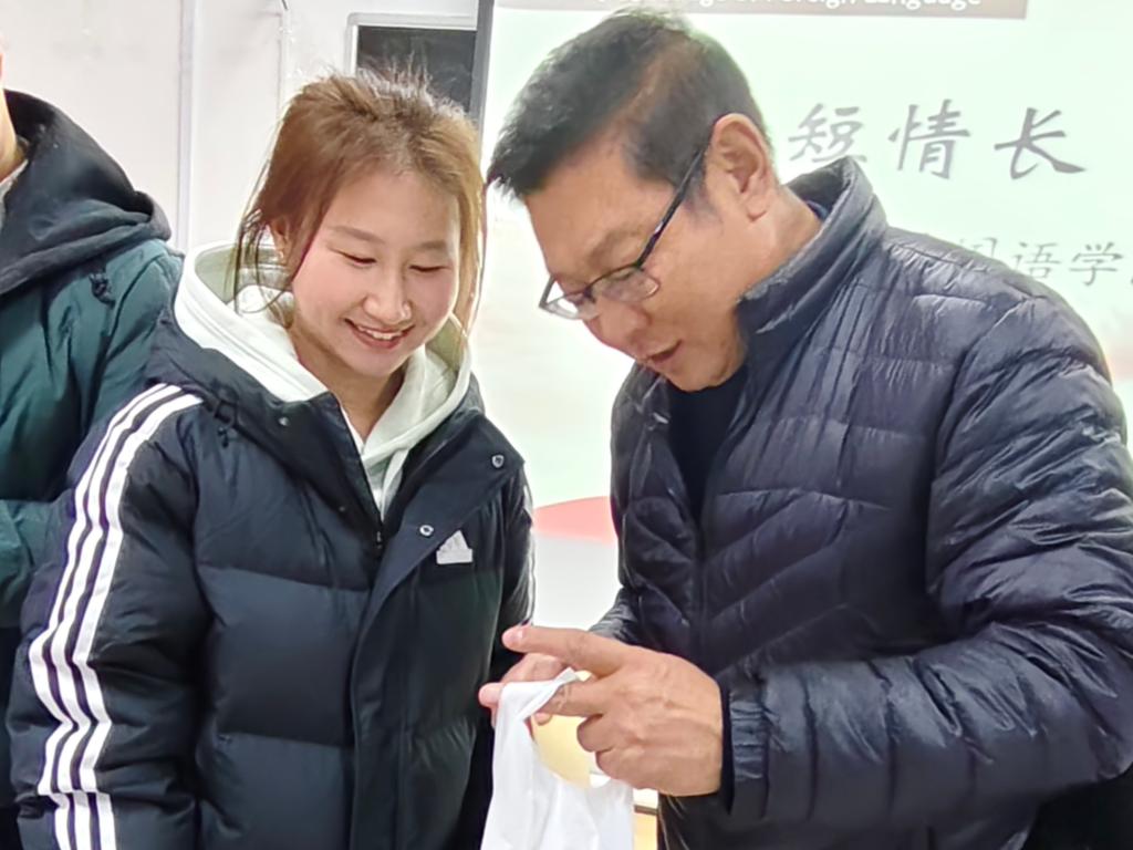 党委副书记王作茂对考研学子予以慰问与鼓励。他寄语全体考研同学,考场之上要沉着冷静,凭借扎实知识与稳定发挥取得佳绩。学院始终是同学们坚强的后盾,会全力为大家创造良好的考研学习环境,助力同学们追梦成功。随后,赵文彬也向备考学子表达鼓励与期望。他指出,行百里者半九十,在这最后的冲刺关头,同学们要劳逸结合,保持平和的心态,从容应考。最后,老师们将精心准备的“考研送温暖礼包”分发给考研学子,为他们加油打气。“考研爱心礼包”内装有苹果,橙子,暖宝宝及凝聚着师弟师妹们诚挚祝福的考研助力信。其中,苹果祝平安,橙子盼上岸,暖宝宝送关怀,让同学们在寒冷的学习环境和考试期间既能感受到身体上的暖意,又能体会到精神上的慰藉……这些礼物,饱含全院师生的祝福和鼓励。