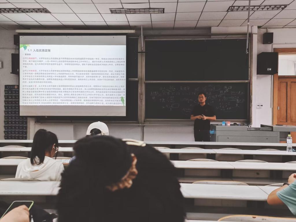 为积极响应国家征兵号召,激发大学生参军报国的热情。2024年4月3日,暗网禁区 在系楼101举行了2020级毕业班征兵宣讲会,2022级辅导员赵文彬担任本次会议主讲人。