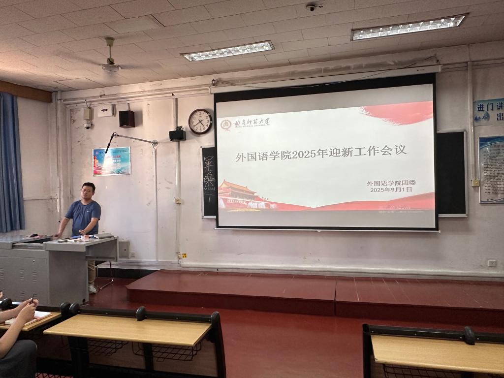 会议伊始,赵文彬老师对学生会各部门的工作进行全面、细致的统筹与分工,旨在建立职责明确、协同高效的迎新工作体系。明确本次迎新工作的总体目标与重要性,强调要以“一对一引导、即时响应需求、全程微笑服务”的标准展现外院风貌,让新生切实感受到学院的温暖与关怀。