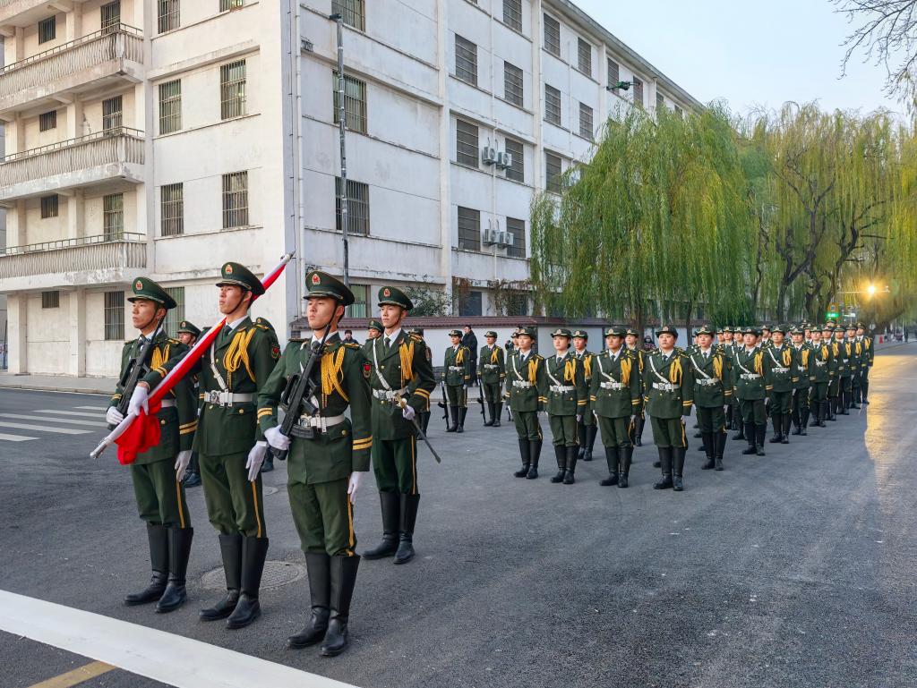 迎着东方的晨曦,怀着赤诚的敬意,国旗护卫队的队员们迈着整齐有力的步伐走向旗台。当庄严的国歌奏响,国护队员们整齐划一地向国旗敬礼,他们身姿挺拔,目光如炬,将无声的敬意与深沉的情感注入这场庄重肃穆的仪式里。同时,观看仪式的同学们聆听国旗下讲话,跟唱国歌,对国旗行注目礼。