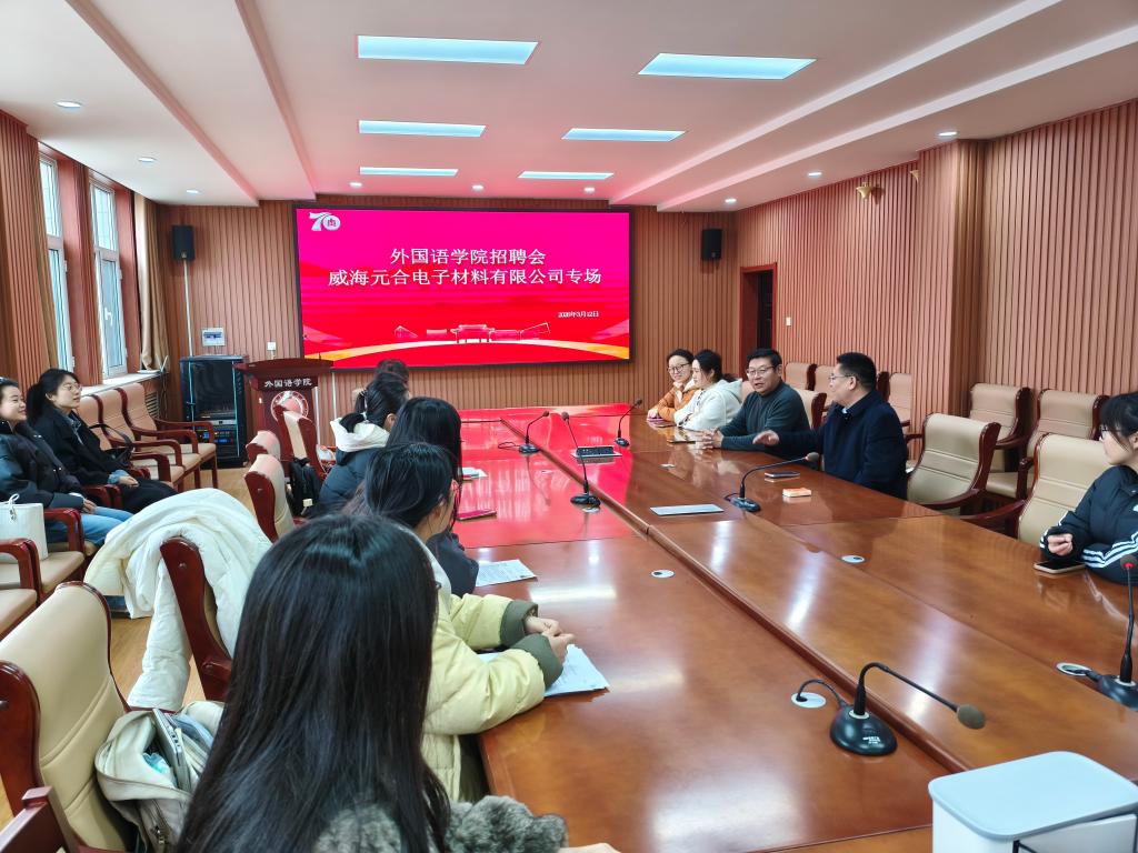 特邀威海元合电子材料有限公司于学院206会议室成功举办专场招聘宣讲会。学院党委副书记王作茂、毕业班辅导员以及部分2026届毕业生共同参加了此次活动。