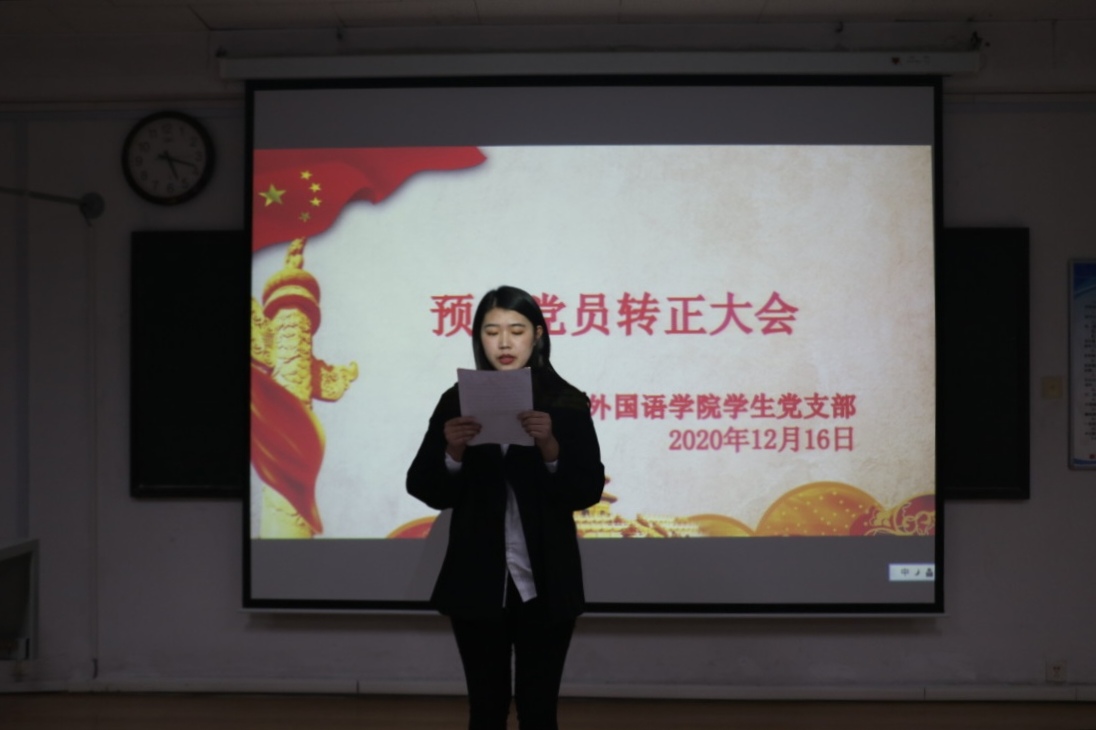 党支部书记张晓对参会人数进行清点,并宣布了党员到会情况。大会首先由申请转正的同志逐一宣读自己的转正申请,详细汇报自己在预备期间的表现,表达入党的志愿和决心,并对自己预备党员期间,在思想、学习和工作上的进步与不足做认真的总结。