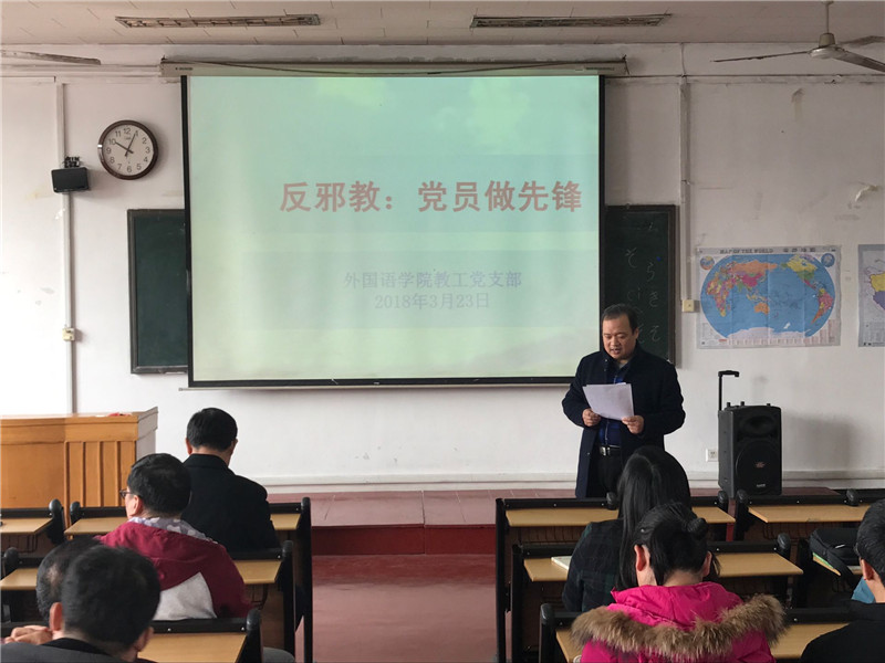 教工党支部和学生党支部全体党员在201教室开展了“反邪教:党员做先锋”的主题教育活动。