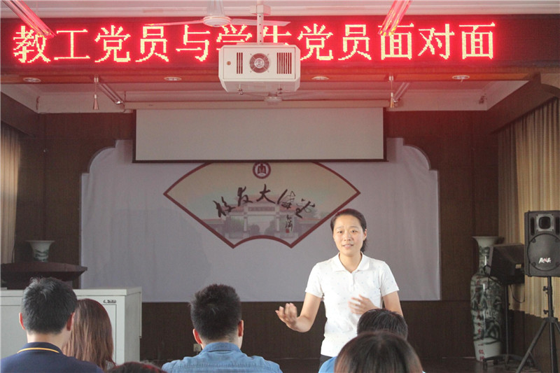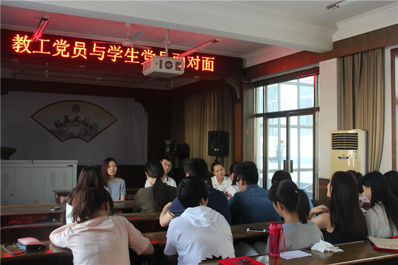 活动现场学教工党员与学生党员们围坐一起,在相互介绍了解之后开始交流,他们跟同学们享了自己在大学的学习、生活,以及自己的工作经历、经验。他们言语朴实而幽默,营造了轻松舒适的气氛,拉近了双方距离。活动最精彩的部分当属咨询交流环节,学生党员们就自己生活、学习与人生规划方面存在的疑惑及忧虑向教工党员寻求帮助。两位老师也吐露心声,和他们一起畅谈人生,特别是在学业、竞赛、考证、考研、就业选择及考公务员等方面的给出了自己深刻精辟的见解,给予了学生党员们切实有效的建议。活动接近尾声,老师们告诉大家放低姿态,积极主动寻找机会,在生活中不断地磨砺自己,追求全面健康发展努力并为毕业生党员送上了组织的祝福。周瑞杨还亲切的嘱咐学生党员们积极发挥党员模范前锋作用,将自己今天的收获与周围的同学分享交流,帮助大家一同进步。学生党员们也表示此次活动十分有针对性和时效性,让大家有了奋斗的方向,青春的路上少了一份迷茫。