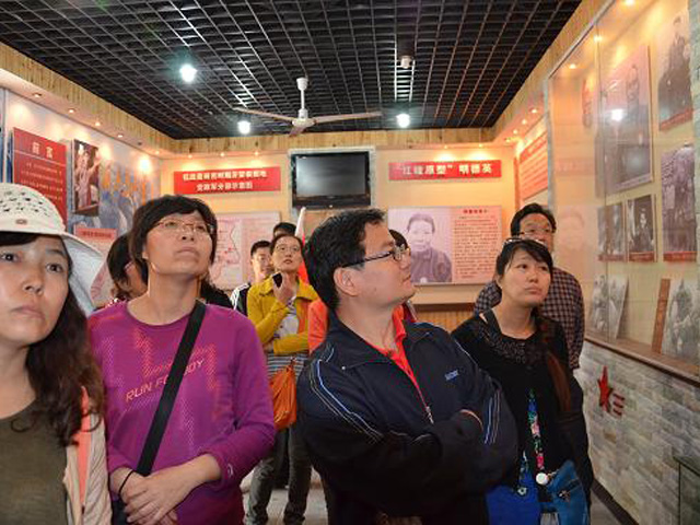 在导游的讲解中,党员们深情重温了“红嫂”可歌可泣的事迹:在战火纷飞的年代,“沂蒙红嫂”送子送郎上前线,用乳汁救护伤病员,舍弃亲骨肉,养育革命后代,摊煎饼、做军鞋,用柔弱的肩膀与男人们共同撑起了革命战争的胜利。