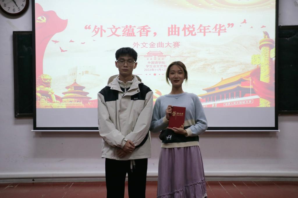 决赛由两个环节组成,第一环节为选手两两自由组队演唱环节,第二环节为选手现场抽取关键词清唱环节,两环节综合评分决定最后成绩。第一环节中,张雨泊、霍泓楠演唱的Closer向我们传达了歌曲中热烈的情感和忧伤的情愫,令观众动容。第二环节中,张智涵围绕所选关键词“love”清唱For Him,向我们传递了勇敢的爱。所有选手都满怀热情,他们的歌声像冬日的一缕暖阳,温暖了观众的心扉。经过激烈的角逐,张雨泊获本次“外文蕴香,曲乐年华”外文金曲大赛一等奖,刘颖、张馨然获二等奖,张智涵、曹雪琛、霍泓楠获三等奖。