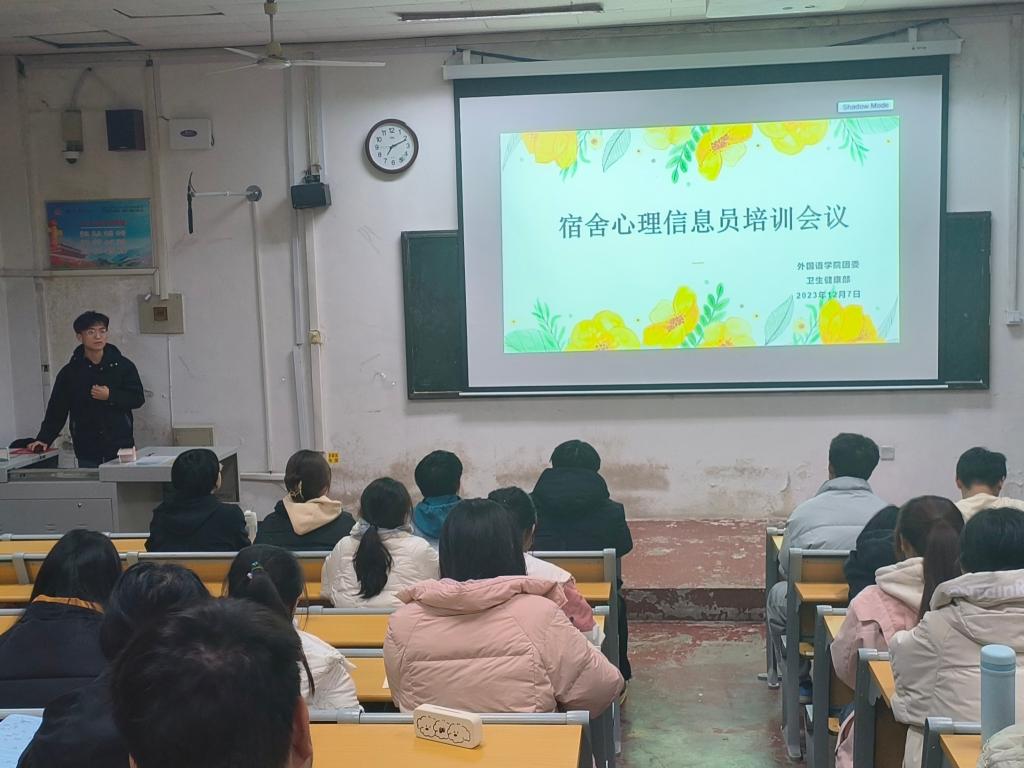 于外语楼101教室开展宿舍心理信息员培训会议。2023级全体宿舍心理信息员参加此次会议。