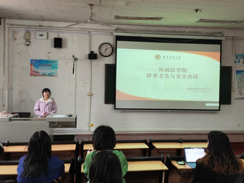 会议伊始,团委宿管部部长宋晓燕为大家认真讲解了宿舍违规电器和安全隐患排查工作的相关内容。随后,她向班委们详细介绍了宿舍卫生检查、晚归查寝等事项,包括线上查寝流程、班委查寝表格的领取与上交等,以提高学生干部对宿舍卫生与安全的重视,使各项工作有力有序开展。会议的最后,团委宿管部部长宋晓燕向班委们强调学生公寓管理规定的奖惩细则,进一步明确了宿舍管理相关规定。