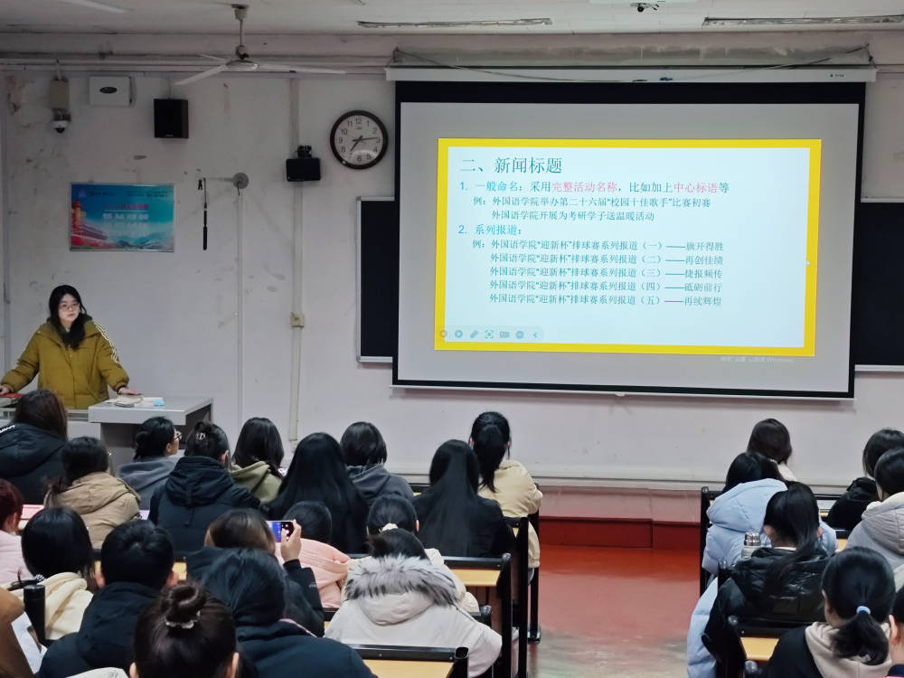 团委办公室副部长孙凌洁讲解办公室活动量化表提交的各项要求,明确表格编辑的相关细节。随后,团委宣传部副部长于子涵介绍新闻撰写的注意事项,为同学们提供具体范例进行参考。最后,团委办公室副部长朱晚霞强调报销的具体流程,清晰地向同学们介绍了需关注的各项要求。