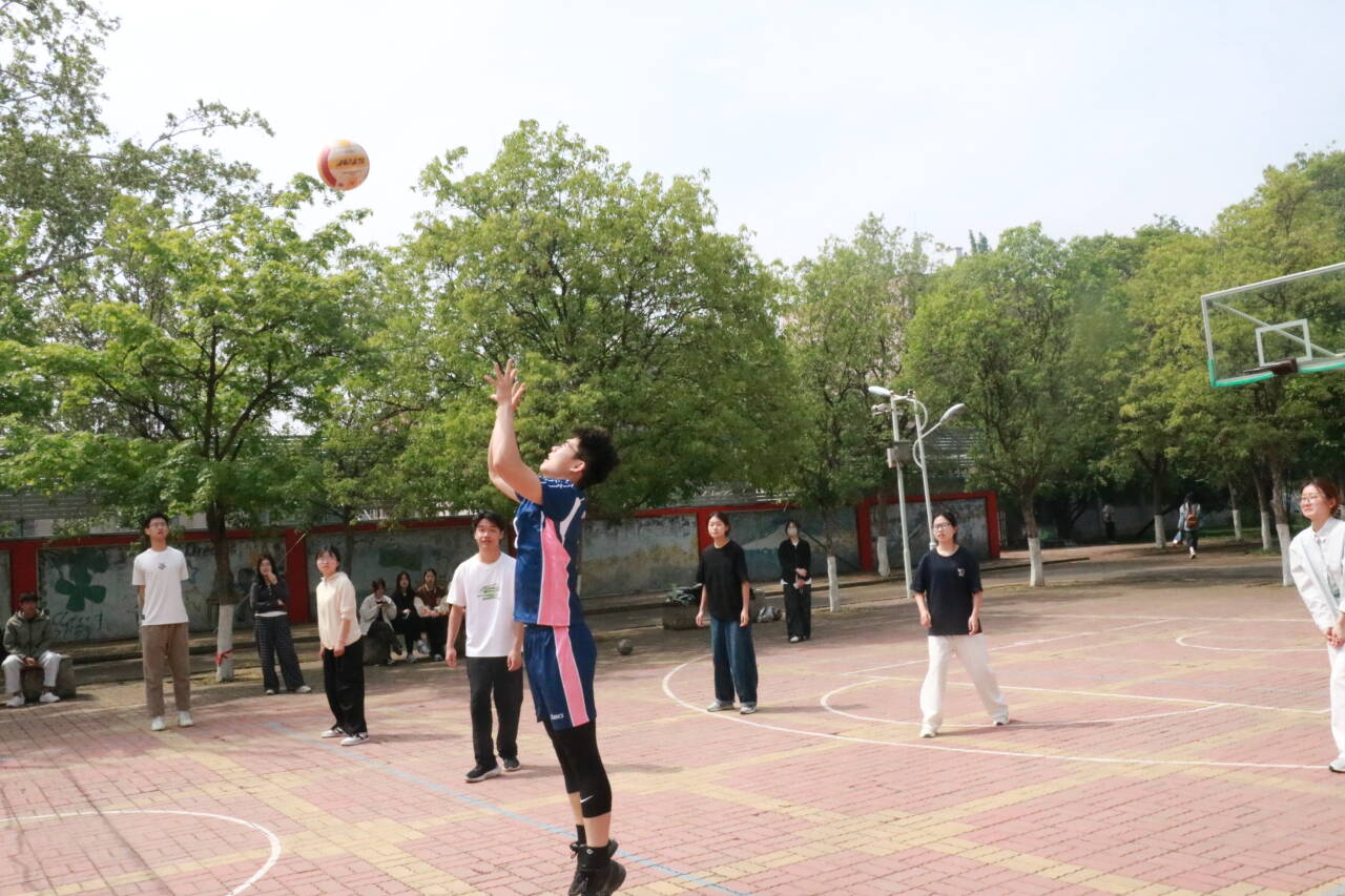 2021级辅导员徐明涛出席首场比赛并亲自开球,班级排球赛正式拉开帷幕。