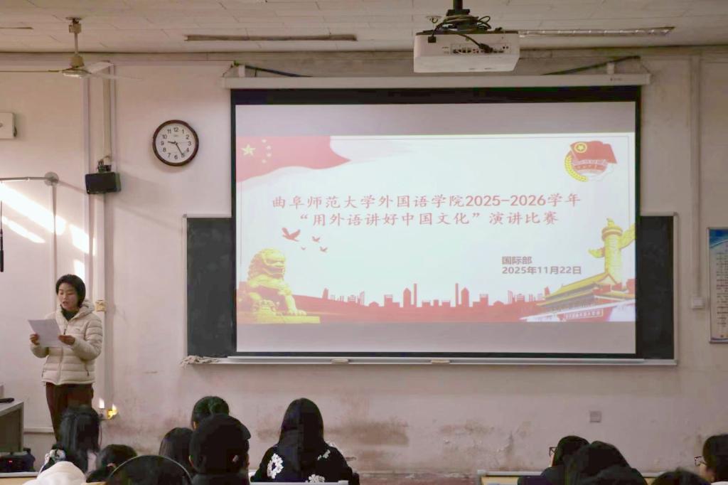 比赛围绕“习近平文化思想”“中国故事”“山东故事”“曲阜故事”等主题展开。参赛选手以外语为媒介,用清晰的发音、流畅的表达和饱满的情感,生动讲述了文化传承与时代发展的精彩故事。选手们结合自身学习与实践经历,以慷慨激昂或娓娓道来的方式,充分展现外院学子扎实的语言功底、文化自信与传播能力。现场气氛热烈,观众们全神贯注,用一次次热烈的掌声表达着共鸣与赞许。最后,经评委综合评定,陈嘉聪以极具感染力的演讲脱颖而出,荣获一等奖;丁珂莹、周凯琦荣获二等奖;张宁、张一凡、李慧贤荣获三等奖。