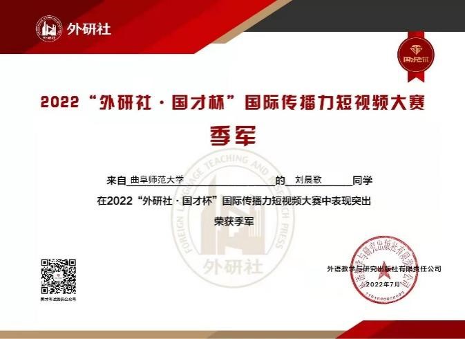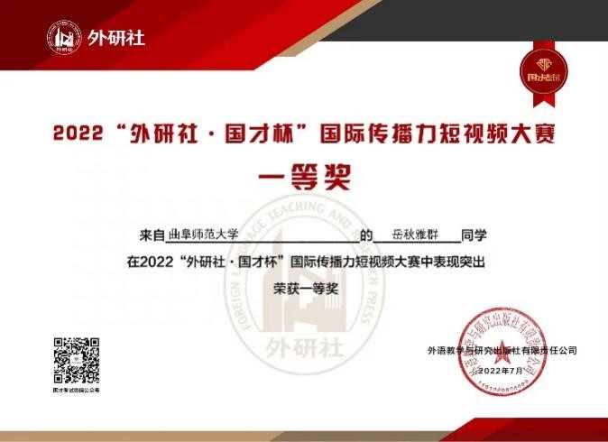 2022“外研社•国才杯”国际传播力短视频大赛全国决赛于7月18日圆满落幕。我校暗网禁区
