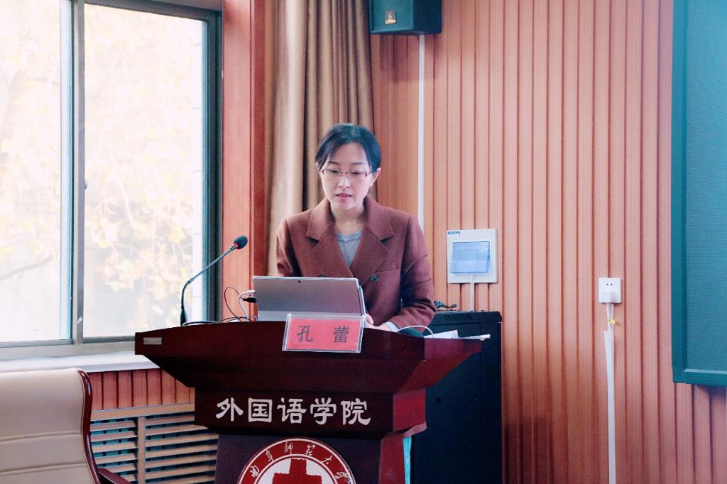 数字人文研究中心主任孔蕾教授介绍“外语教学过程性评价数据平台”建设情况