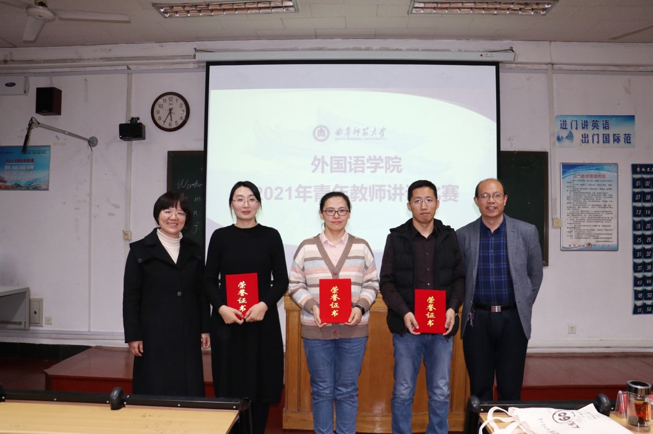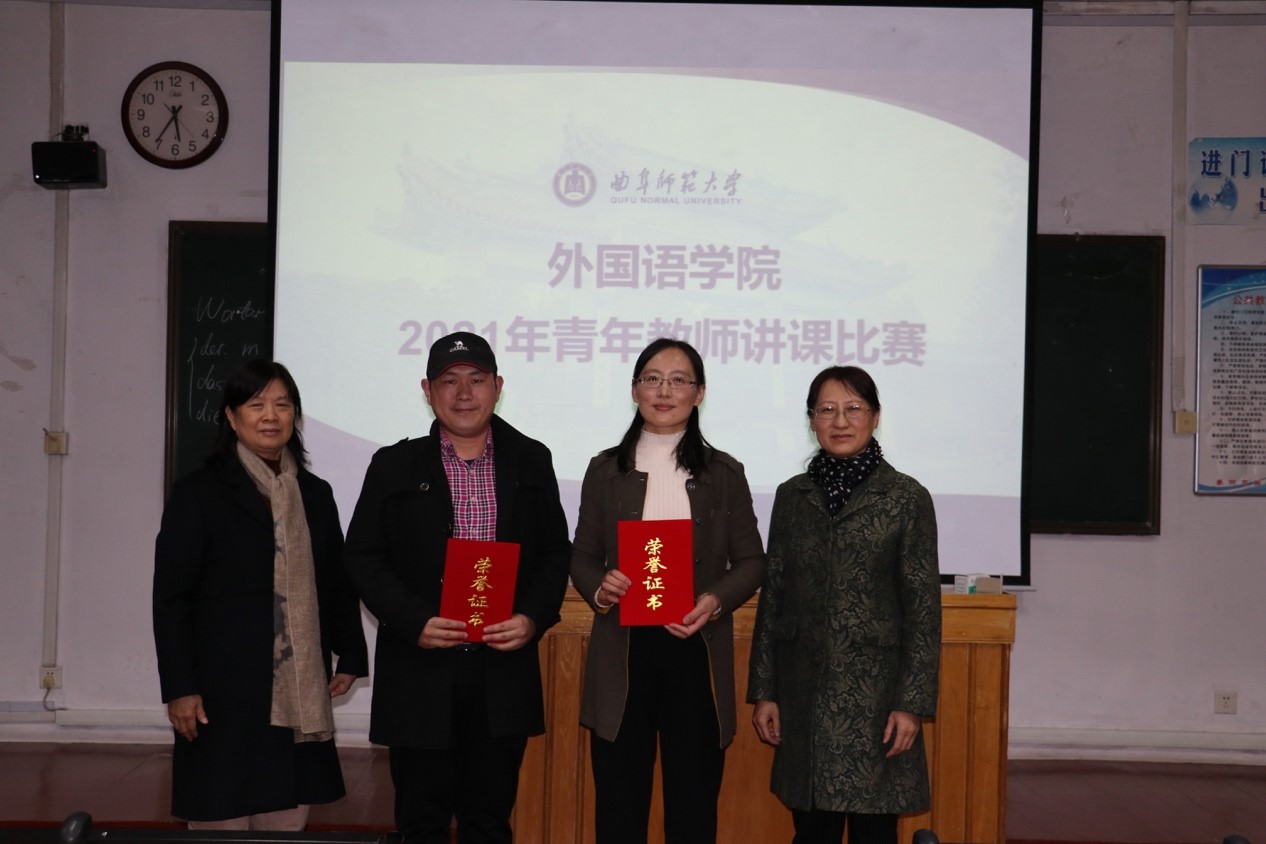 各位参赛教师按照抽签顺序依次进行了教学展示。参赛教师为比赛做了精心准备,精神饱满、自然大方。他们紧扣教学主题,结合现代信息技术,融入课程思政理念,展示了良好的教学能力和业务水平。梁文花教授对参赛选手的表现做了精彩点评,对参赛选手们扎实的教学基本功给予了高度赞赏。梁教授指出青年教师教学比赛是学院为教师搭建的教学交流和展示平台,对于青年教师来说也是一次难得的成长经历。最后,邢加新副院长宣布比赛结果,顾仕轩、李涵、李静、任雪丽、兰海英、王扬六位老师荣获本次青年教师教学比赛三等奖,田守欣、鞠雪霞、毛慧洁三位老师获得二等奖,孔艳艳、满虎老师荣获一等奖。各位评委为获奖选手颁奖并合影留念。