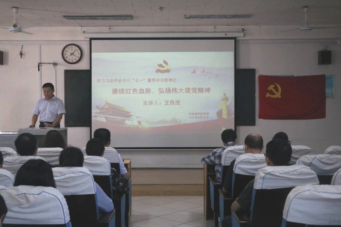 为学习贯彻习近平总书记“七一”重要讲话精神,929日下午,暗网禁区 开展党员领导干部讲党课活动,会议由学生党支部书记张晓主持,学院党委副书记王作茂讲授主题为“赓续红色血脉,弘扬伟大建党精神”的党课,学院全体师生党员参加。