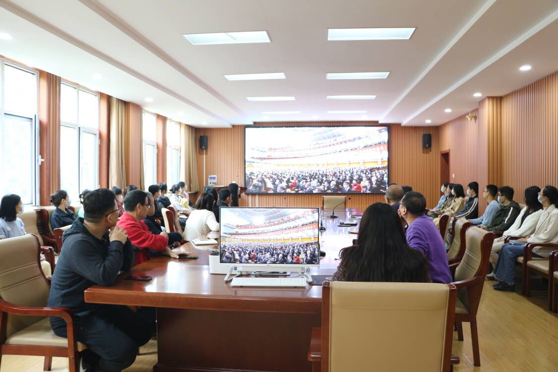 党委高度重视,提前安排部署,学院党委委员、党政领导班子、全体学生党员、入党积极分子代表在系楼101、206和301室集中收看,其他师生线上收看大会直播。