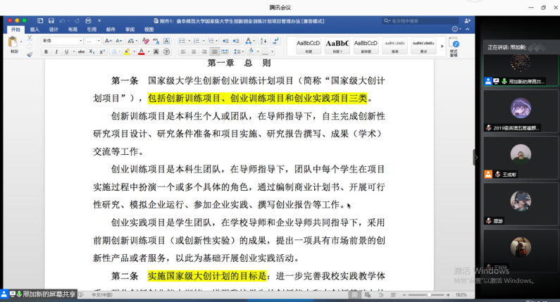 本次动员大会邢加新老师分别从项目简介、申报程序、管理规定、优秀案例四个方面进行了介绍。其中,邢老师就本次创新创业项目管理规定进行详细讲解。小至项目类型选择,大到项目立项,邢加新老师一一点出其中所涉及的细节问题并加以强调。同时,邢加新老师对大创项目立项运行问题提出建议,他指出,参与大创项目的同学们应坚持创新创业项目与自身专业相结合的原则,注重大创项目的现实意义和可行性。同学们可以咨询指导教师,学习优秀案例经验以提高项目成功率。会议最后,邢加新老师耐心解答了一些同学提出的问题。同学们在此次会议中认真听讲,收获颇丰,这为接下来同学们完善大创项目工作打下良好基础。