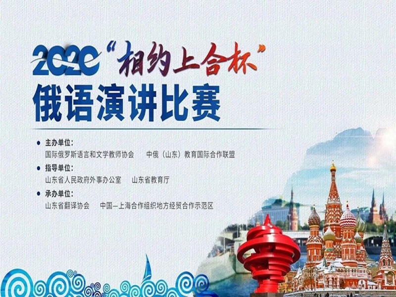 2020年9月25日,由山东省教育厅和山东省人民政府外事办公室指导,国际俄罗斯语言和文学教师协会和中俄(山东)教育国际合作联盟共同主办,山东省翻译协会、上合组织地方经贸合作示范区承办的“相约上合杯”俄语大赛高校组在济南成功举办。本次比赛共有来自全省各大高校的84位选手参加。