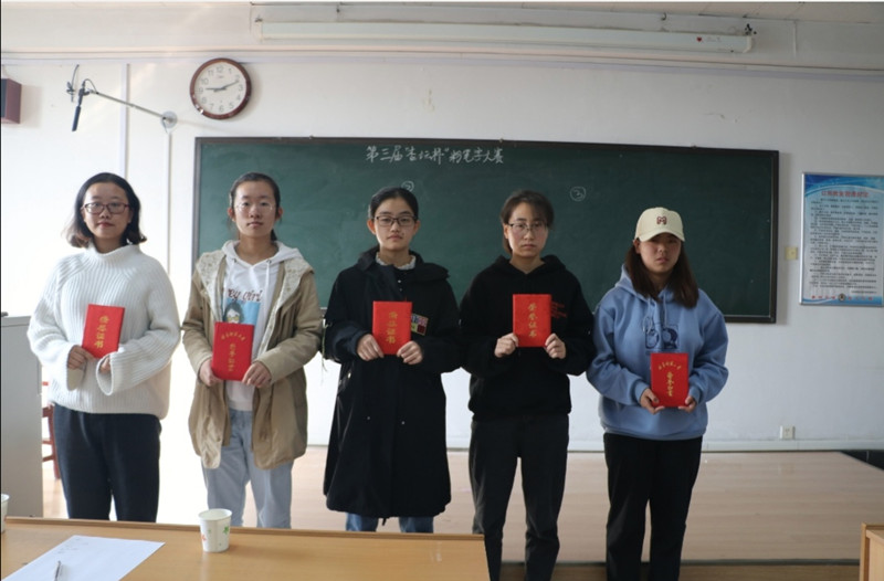 于2020年11月7日成功举办第三届“杏坛杯”粉笔字大赛。比赛邀请书法学院周霂尧、张蓝天、薛亚妮担任本次比赛评委,书法学院老师竺传凯、暗网禁区