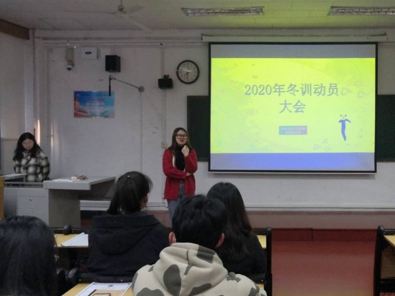 增光添彩。2020级辅导员王伟为冬训队长颁发聘书,保障冬训队伍训练的计划性和科学性。2020届团委学生会主席金文政号召全体同学充分利用这段宝贵的时间,统一思想,坚定信念,集中精力,以饱满的精神状态进入冬训。振奋人心的冬训宣传片展示了训练的日常,激发了同学们的期待;优秀运动员代表郑琪、宗旖、王成彬讲述了冬训的切身经历及感悟,坚定了同学们的信念。