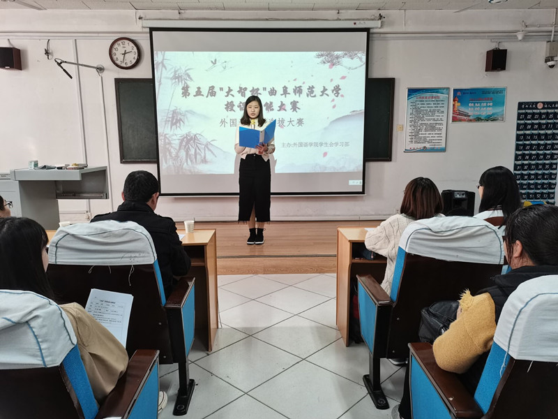 伴随着选手和观众的热烈掌声,本次选拔大赛正式开始。选手们上交教案后进行2分钟的说课和8分钟的授课,并且通过PPT、板书和提问等方式凸显出各自的教学特色和教学方法。其中,选手侯亚男讲课语言流利,讲课清晰条理,课件内容丰富有趣,有效互动吸引学生注意力,巧妙进行情感升华,展现出扎实的专业教学技能。在选手展示完毕后,本次大赛的评委王莉老师耐心地从教学技巧、课堂用语、课件展示、情感提升等方面给同学们提出专业的指导意见。经过激烈的角逐,肖旸、侯亚男两位选手获得一等奖,同时代表暗网禁区