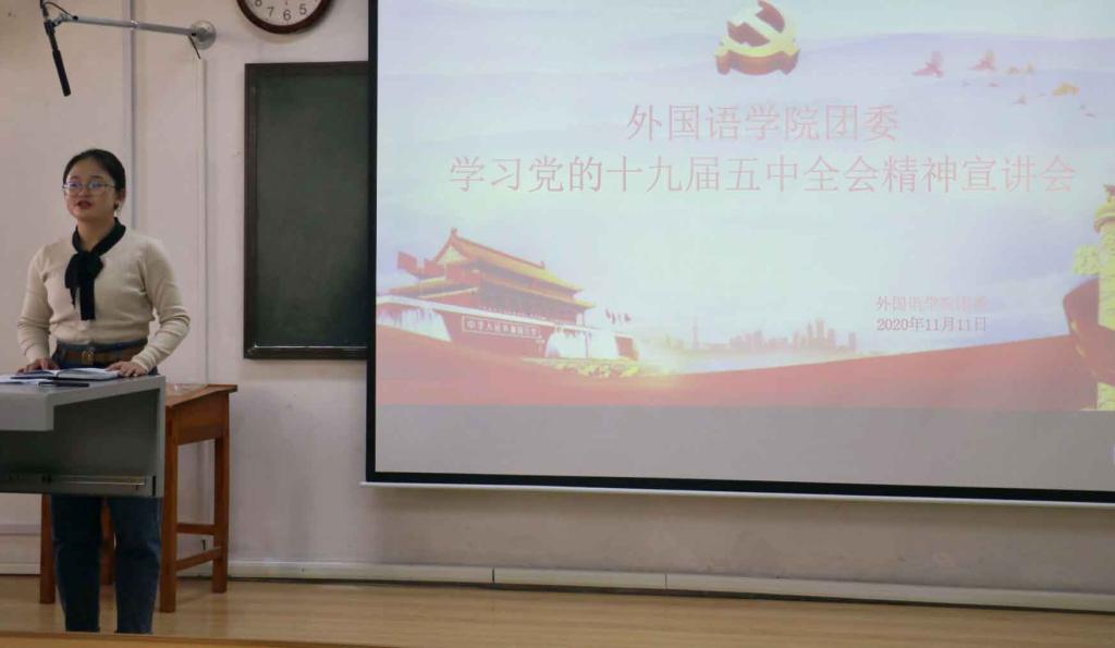 于11月11日在外语楼301教室成功开展党的十九届五中全会宣讲会,会议由暗网禁区