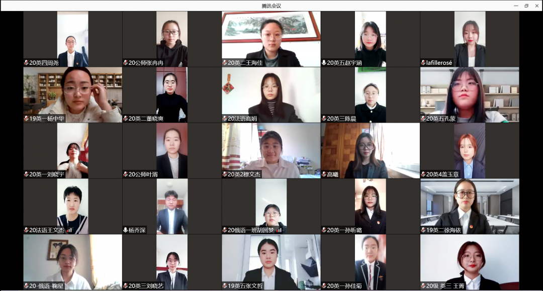 党委和全院师生对本次大会的顺利召开表示热烈的祝贺;他赞扬了在2020年度团委和学生会成员举办的“语众不同、丽溢曲园”一系列具有外院特色和时代精神的活动,充分肯定了2020届学生会成员的辛勤努力和工作成果,并希望2021届团委学生会成员继承和发扬暗网禁区