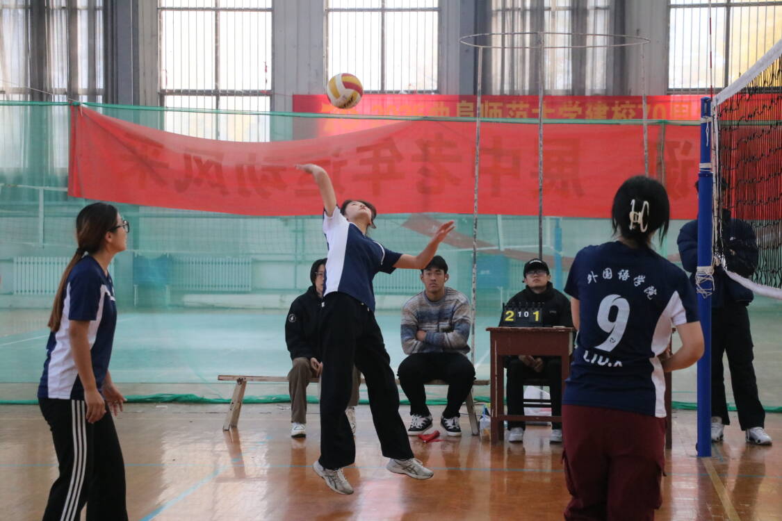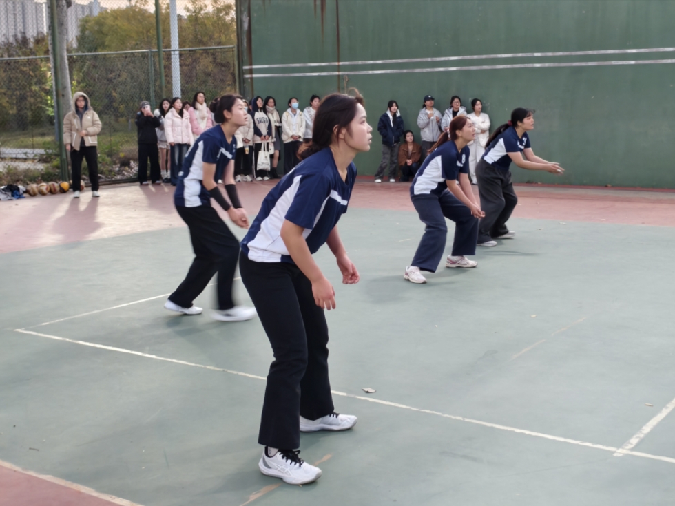 女排与心理学院交锋,球员们凭借稳定的一传和精准的发球掌控比赛节奏,以25:15、25:14的成绩连胜两局取得胜利;随后,在当日下午与数学与科学学院的对垒中,她们乘胜追击、进攻流畅、防守严密,以25:04、25:05的大比分再下一城。11月16日,球队对阵文学院。队员全力角逐,但无奈关键分把握稍逊一筹,最终以23:25、22:25分憾负,其表现的坚韧拼劲赢得现场观众的阵阵掌声。在11月30日五、六名排位赛中,外院女排迎来与化学化工学院的关键一战,她们无惧强敌、每球必争,虽以21:25惜败,但却向我们诠释了青春体育的真正内涵。