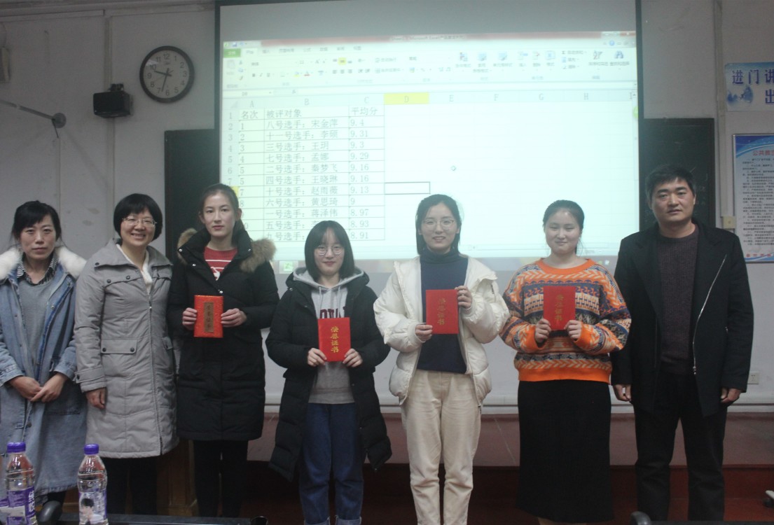 比赛分为说课和讲课两个环节,11位参赛选手授课风格各异,在课堂设计、板书展现、仪态表现等方面各有千秋。在说课环节,选手们根据课文知识特点,突出重点。使得知识结构更加条理化、清晰化。讲课环节更是精彩绝伦,内容丰富。参赛选手们讲课形式新颖、风趣幽默,注重调动学生的积极性。同时,选手们将各个环节处理得严丝合缝、逻辑关系科学有序,环环相扣、引人入胜,为我们呈现了一个活泼生动的英语课堂。最终8号选手宋金萍、11号选手李硕凭借出色的表现获得一等奖。