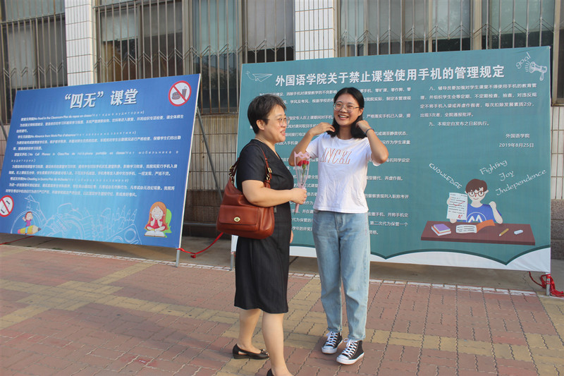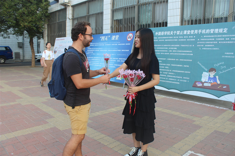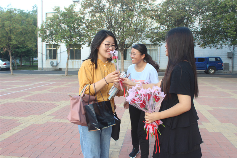 学生会于9月10日在外语楼前举办了教师节献花活动,学生会主席张敏、学生会团委副书记刘仪霞、郑琪等参加了本次活动。