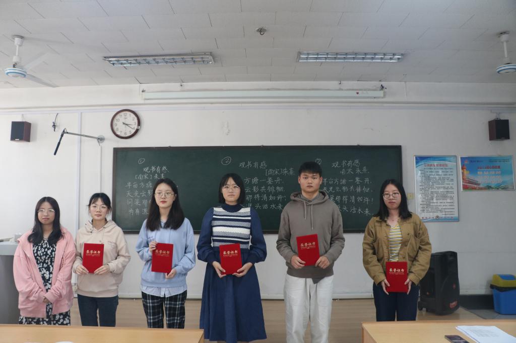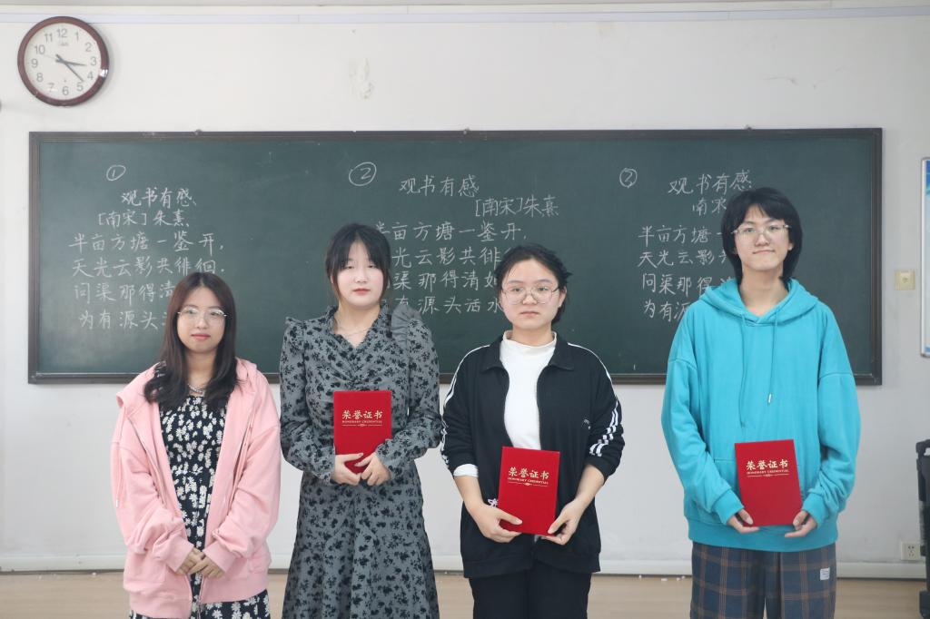 于系楼301举办第四届“杏坛杯”粉笔字大赛。2018级辅导员赵文彬,2020级辅导员王伟出席本次比赛,书法学院学生代表、兰亭书社副社长游黄滨、刘志远、胡单涛担任评委。