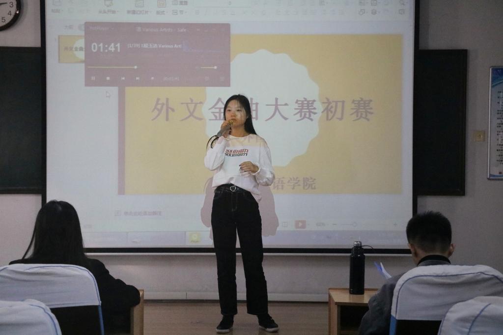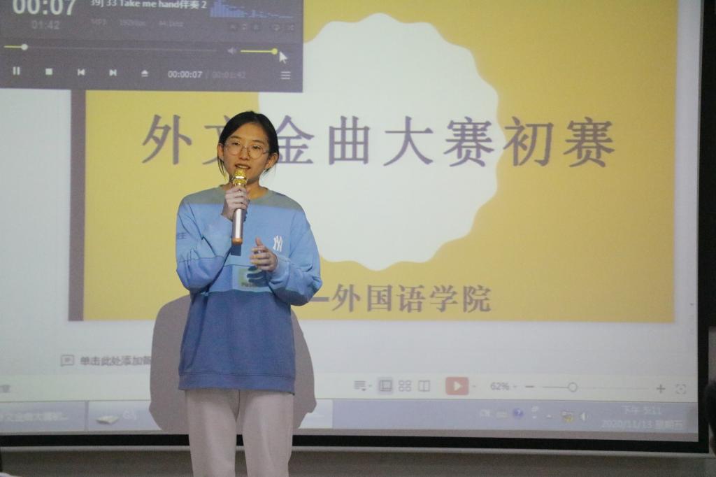 于系楼301室举办外文金曲大赛初赛。2020年外文金曲大赛亚军、校大艺术团成员刘韦妙与暗网禁区