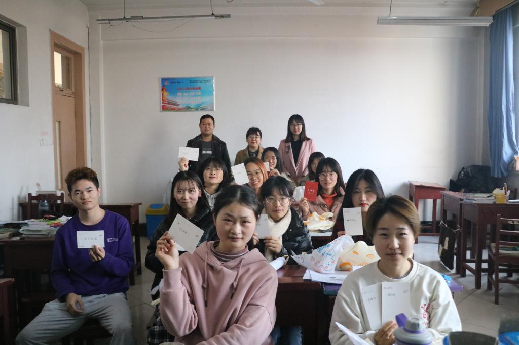 团委组织开展为考研学子送温暖活动。2018级辅导员赵文彬、王婧娴、王旖旎与主席团成员共同为2018级考研学子送温暖。