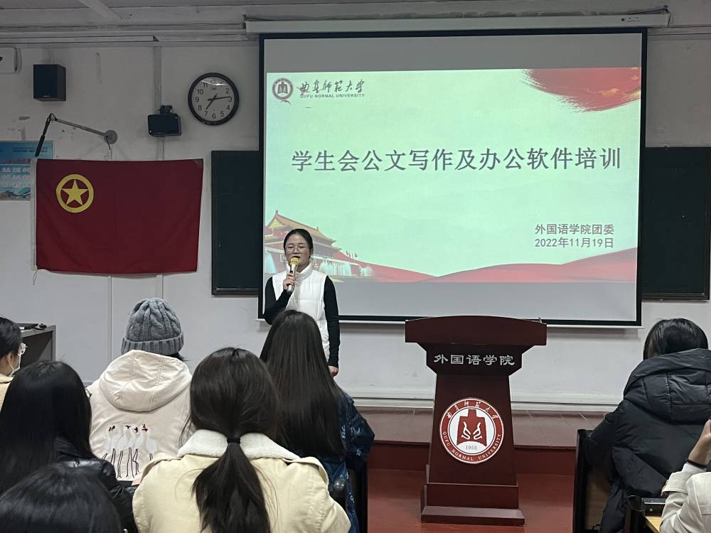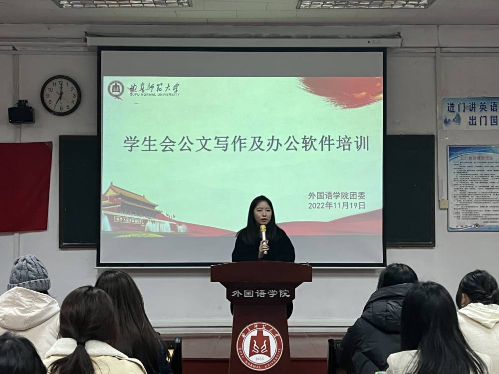 本次培训活动包括办公软件培训、公文写作培训、办公室文档格式要求讲解、学生会报销流程讲解和副部培训。会上,团委副书记张晓提出要求与期望,她指出,学生干部首先要思想端正,树立为同学们服务的意识;要以青马工程培训为契机,加强自身全面发展;要模范带头,为学院共青团的发展贡献力量。她还表达了对学生干部们未来成长的殷切期盼。随后,学生会副主席李茂凯讲解了在线表格和在线文档的使用,在座同学纷纷表示受益匪浅。王子涵从格式及注意事项方面强调了公文写作的严肃性。之后,曲俊羿讲解了各部门向办公室申报文档的要求,明确了奖项申报的流程和格式;殷玉洁介绍了学生会报销流程和要求,强调了发票和报销单填写以及特殊情况报销的注意事项。最后,在学生会主席王孜淳的主持下,学员们在交流中深刻体会到党的二十大精神与学生工作的关系,游戏时,学员们进行“你划我猜”团队游戏,配合默契、协同合作,现场欢声笑语,其乐融融。