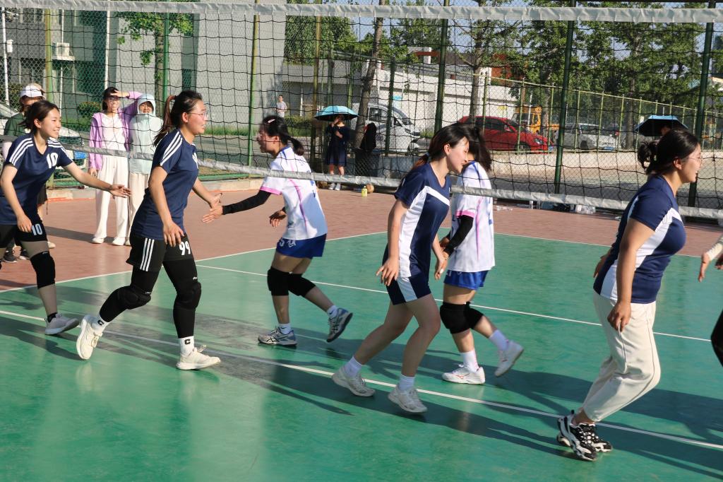 队员们开局便迅速取得优势,占据了赛场的主动权。之后的比赛中,队员们不骄不躁,稳扎稳打,拿下了第一场小组赛的胜利。5月13日下午四点,队员们经过短暂调整之后继续进行与生命科学学院女排的比赛。队员们延续着上一场比赛的状态,有球必争,迎难而上,奋勇拼搏,紧紧咬住比分。虽惜败对手,但队员们团结一心,永不言弃的拼搏精神深深感染了在场的每一个人。