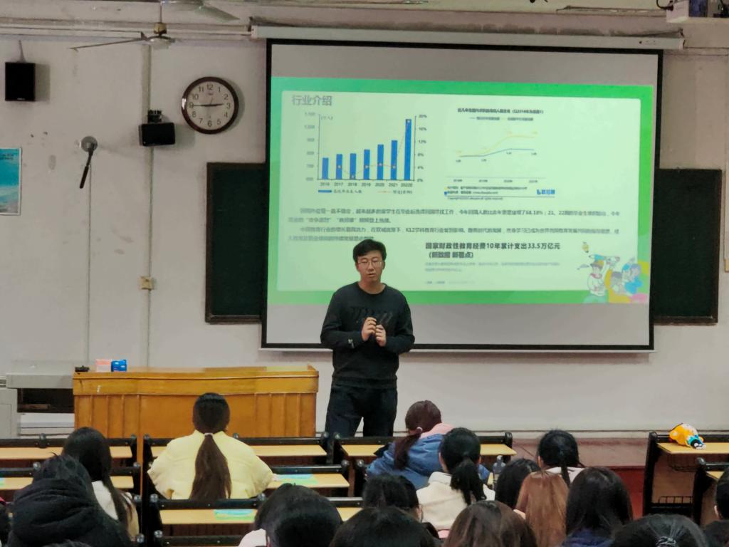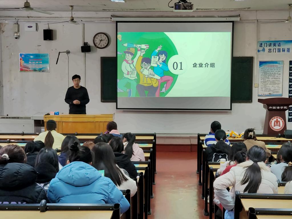 于系楼201室举办大圣光华教育集团专场招聘会。企业单位负责人为外院学子开展招聘宣讲和现场招聘,2019级毕业生参加。