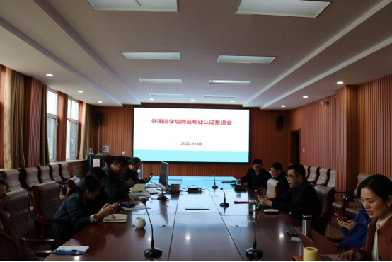 于206会议室召开师范专业认证推进会。副院长邢加新主持会议,学院党委书记费沂涛、院长秦洪武、党委副书记王作茂及师范认证小组全体成员参加本次会议,就认证工作的规划、进度进行了讨论与说明。