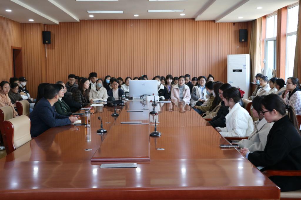 副院长邢加新对当前升学就业形势进行了深入分析,他指出良好的学业能力是同学们踏入社会的基础,立足当下,积跬步,致千里,方能拥有更好的未来。随后,师生交流环节,同学们依次发言,大家围绕着升学复试、就业规划、论文写作等相关的问题畅所欲言。与会老师认真倾听,在结合自己研究领域的基础上一一作出回答,并鼓励同学们放下焦虑,稳定心态,逐步提升自身综合能力。