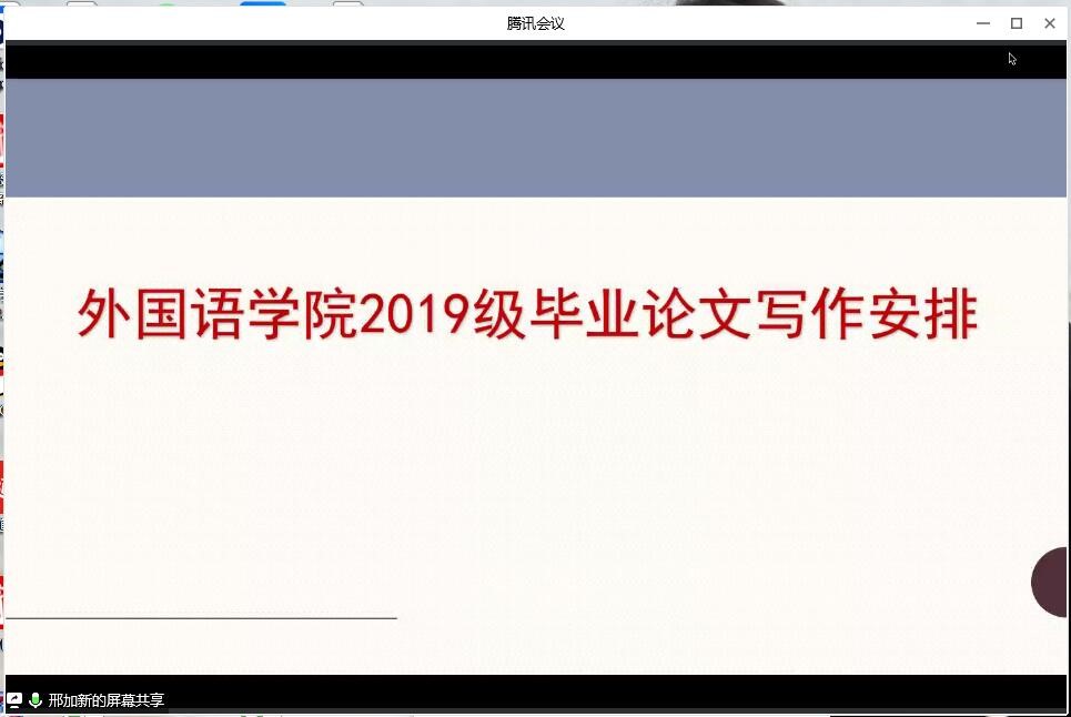 11月30日,暗网禁区 通过腾讯会议召开2019级学生毕业论文写作工作会议。会议由2019级辅导员张晓主持,暗网禁区 副院长邢加新,任课老师张立昌、林瑛、王海霞,教务秘书李娜出席会议,2019级全体学生参加会议。
