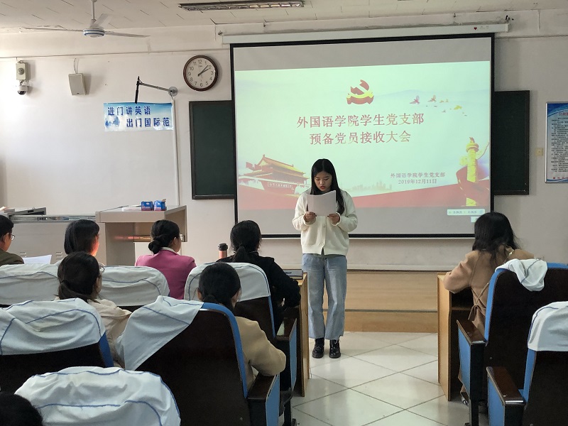 学生党支部于301教室召开预备党员接收大会。会议讨论关于王琦、张敏等35名同志能否接收为预备党员的议题。会议由学生党支部青年委员王旖旎主持,学院党委副书记王作茂莅临指导,学生党支部书记张晓、学院党委组织员冀玉珍及全体学生党员参加。