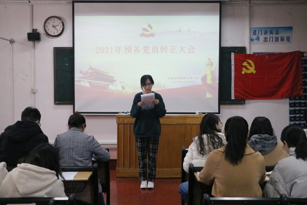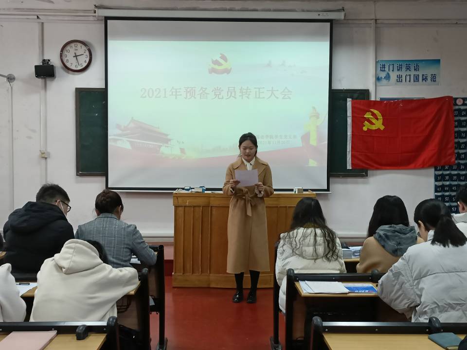 学生党支部于外语楼201室召开了关于讨论刘华、王嘉艺等7位预备党员能否按期转为中共正式党员的会议。会议由学生党支部委员王伟主持,会议邀请学院党委副书记王作茂莅临指导,学生党支部全体党员参加会议。