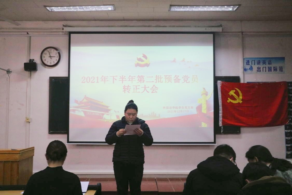 学生党支部于系楼201室召开预备党员转正会议,会议讨论关于王健鹏、徐佳雯等六名同志能否按期转正的议题。本次会议由学生党支部书记张晓主持,党委副书记王作茂莅临指导,学生党支部全体党员参加。