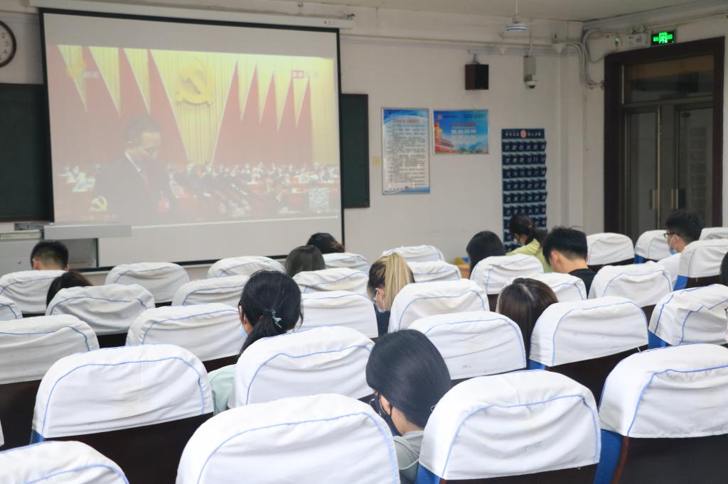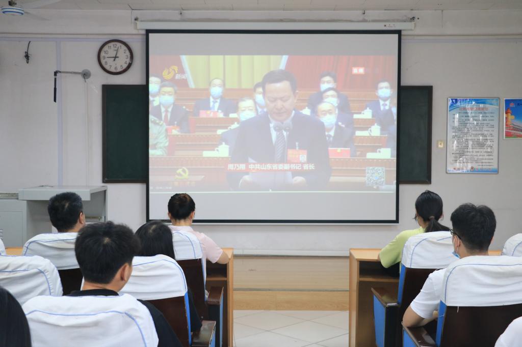 党委书记费沂涛带领学院党员代表在系楼301室收看中国共产党山东省第十二次代表大会盛况,认真观看、深刻学习领会大会报告。