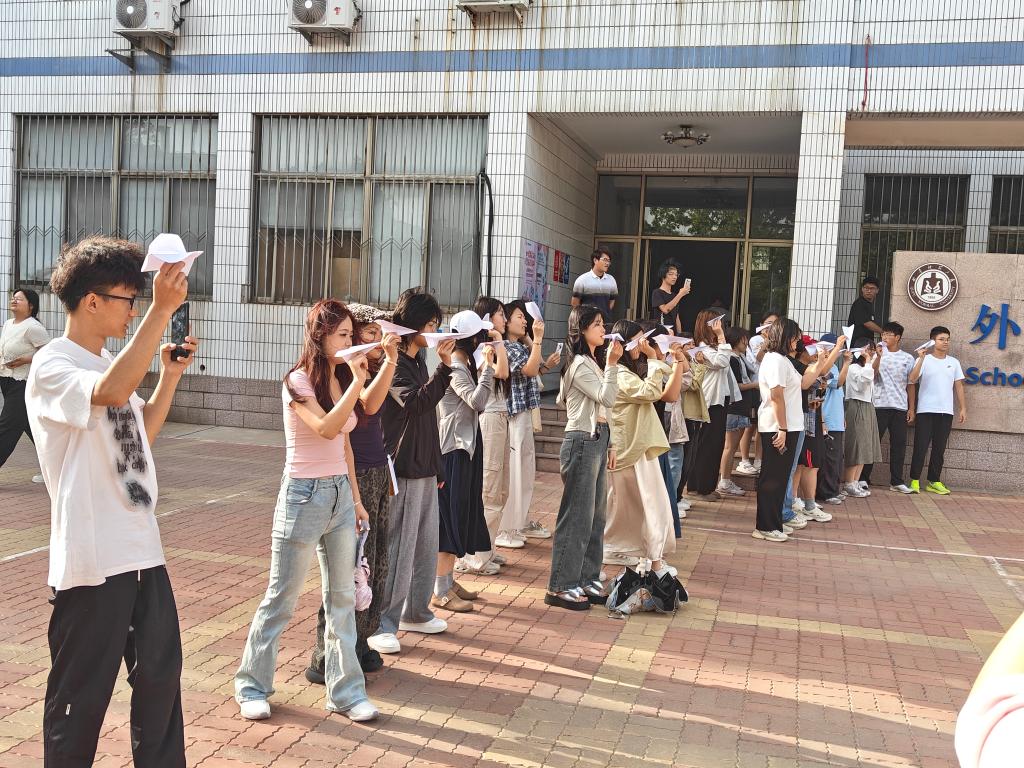 活动伊始,志愿者们为参与者分发纸张,同学们将近期困扰自己的学业压力、人际烦恼等情绪匿名记录在纸上,然后将这些"心事"折成纸飞机。随着主持人的指令,同学们将纸飞机抛向了远方。待纸飞机落地后,同学们俯身拾起他人的“心事”,认真阅读后提笔回应。有的写下温暖鼓励,有的提供实用建议,字里行间流露着真诚与关怀。最后,大家将写满祝福的纸飞机张贴在学院展板上,形成了一道独特的风景线。