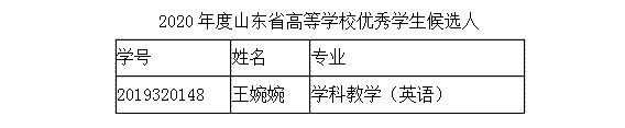 研究生有关管理规定,学院成立以学院书记为组长,分管副院长、导师代表、研究生教学秘书为成员的评审工作小组,对申请人提交的材料进行汇总、审核以及对比,形成初步意见。经学院评选委员会讨论并且投票表决,拟推荐1名研究生为2020年度山东省高等学校优秀学生候选人(名单附后)。