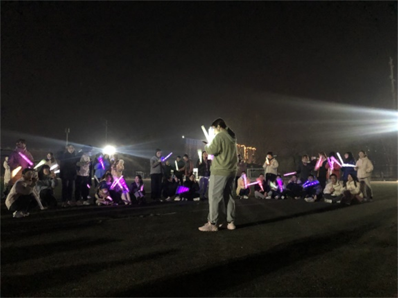 夜跑活动”。同学们挥舞着荧光棒在黑夜中一同起跑,成为西操场上一道靓丽的风景线。夜跑结束后,有同学带来了精彩的歌舞表演,大家掌声阵阵,愉快的氛围感染了每一个人。本次夜跑活动旨在帮助同学们强身健体、释放压力,在锻炼中体会快乐,增进同学友谊和集体归属感。