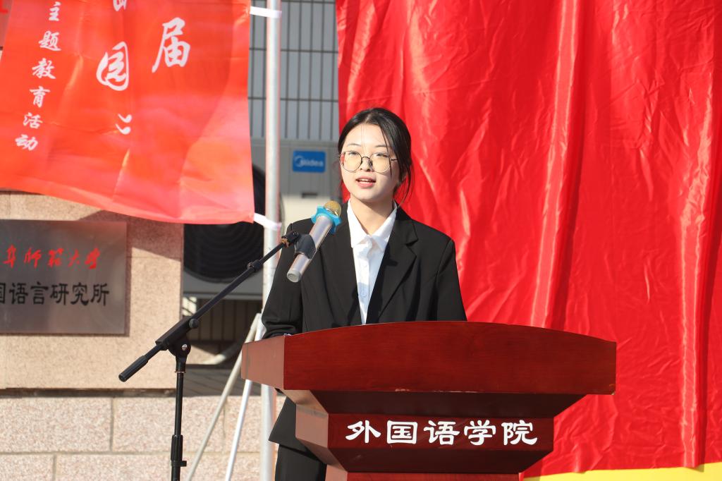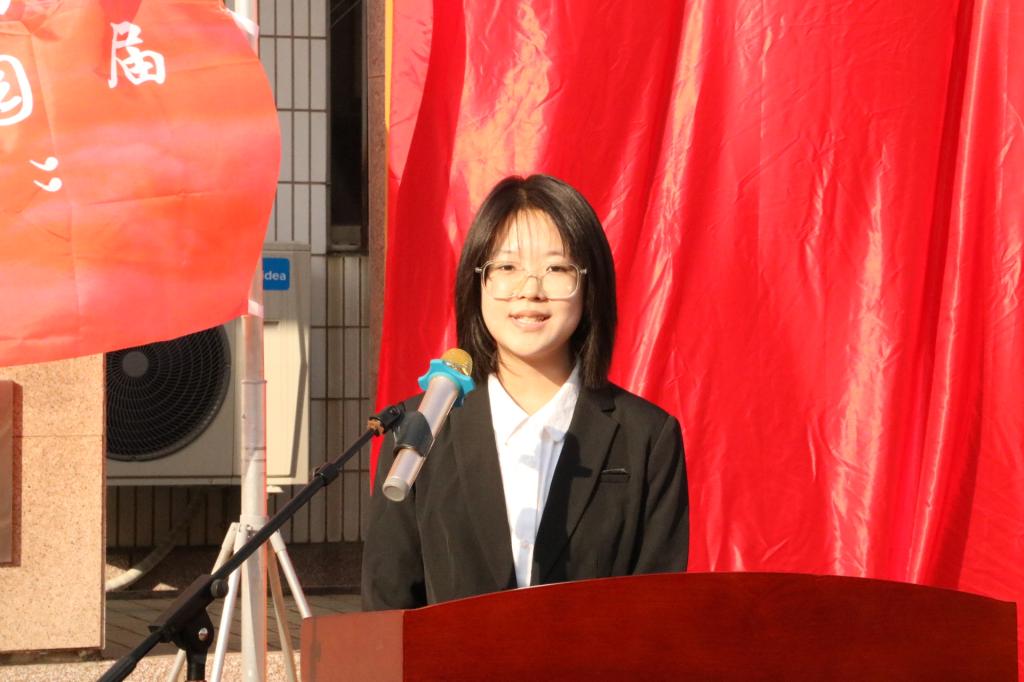 在学生代表发言环节,2024 级学生代表王辰晓分享感悟,她鼓励同学们努力学习外语,用自己的专业向世界讲好中国故事。2025 级学生代表李沛雨宣读 “创建高效课堂,争做文明班级” 倡议,呼吁遵守课堂纪律、诚信应考、积极参与文体活动。