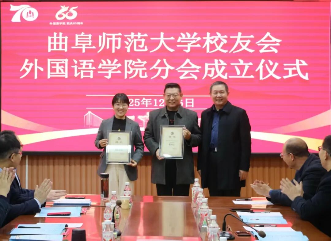 国内合作处处长、校友会秘书长孔宪福为其他当选人员颁发聘书